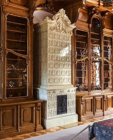 The reconstruction was based on a design, archival photographs, and several salvaged tiles. The original tiles were preserved and placed after conservation as so-called “witnesses” within the stove bodies. However, only those in the know are able to find them, which speaks to the high quality of the reconstruction work.